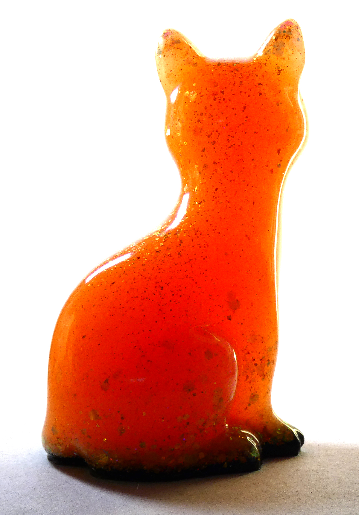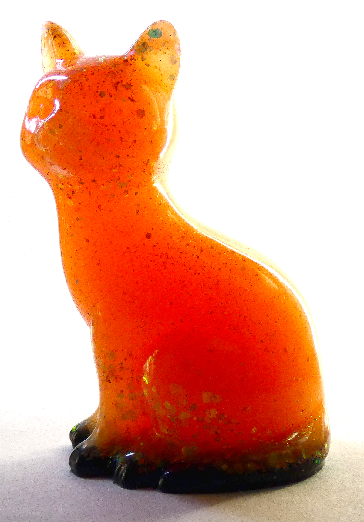 Kattenbeeldje Epoxy – Oranje Glow & Glitter
